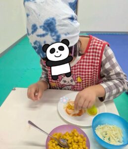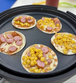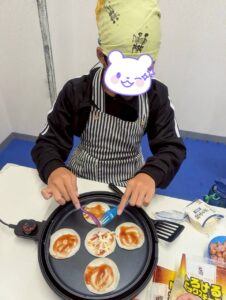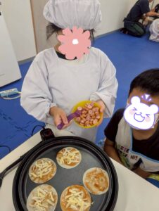 10月13日の祝日に、ぎょうざの皮を使ったピザづくりをしました🍕