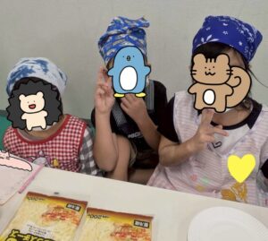 子どもたちはエプロンを持参して、張り切って準備をしていました!